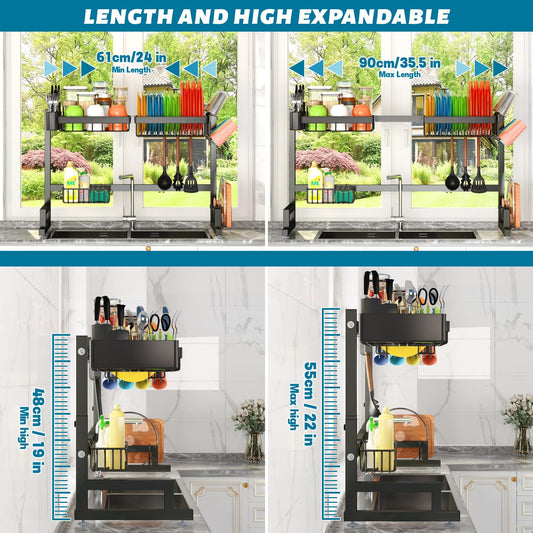ADBIU Over The Sink Dish Drying Rack (Expandable Height and Length) Snap-On Design 2 Tier Large Dish Rack Stainless Steel (24" - 35.5" L x 12" W x 19" - 22" H)Regular price $35.99 USDRegular priceUnit price / per$29.99 USDSale price $35.99 USD