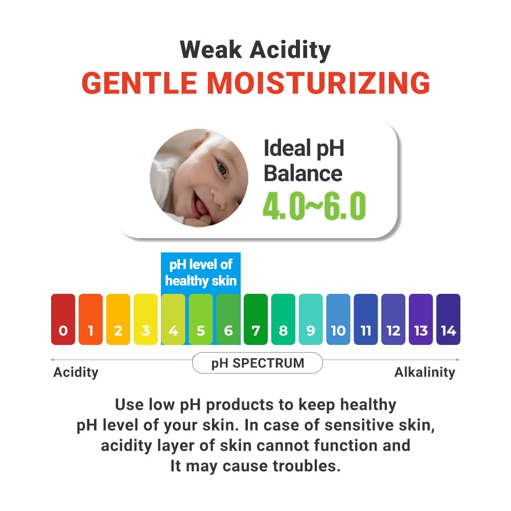 - LOW PH FORMULA FOR GENTLE CARE: This Korean moisturizer has a formula with a low pH level similar to the healthy skin’s pH maintains the skin’s healthy condition without irritating it and helps rough skin to be silky and healthy.