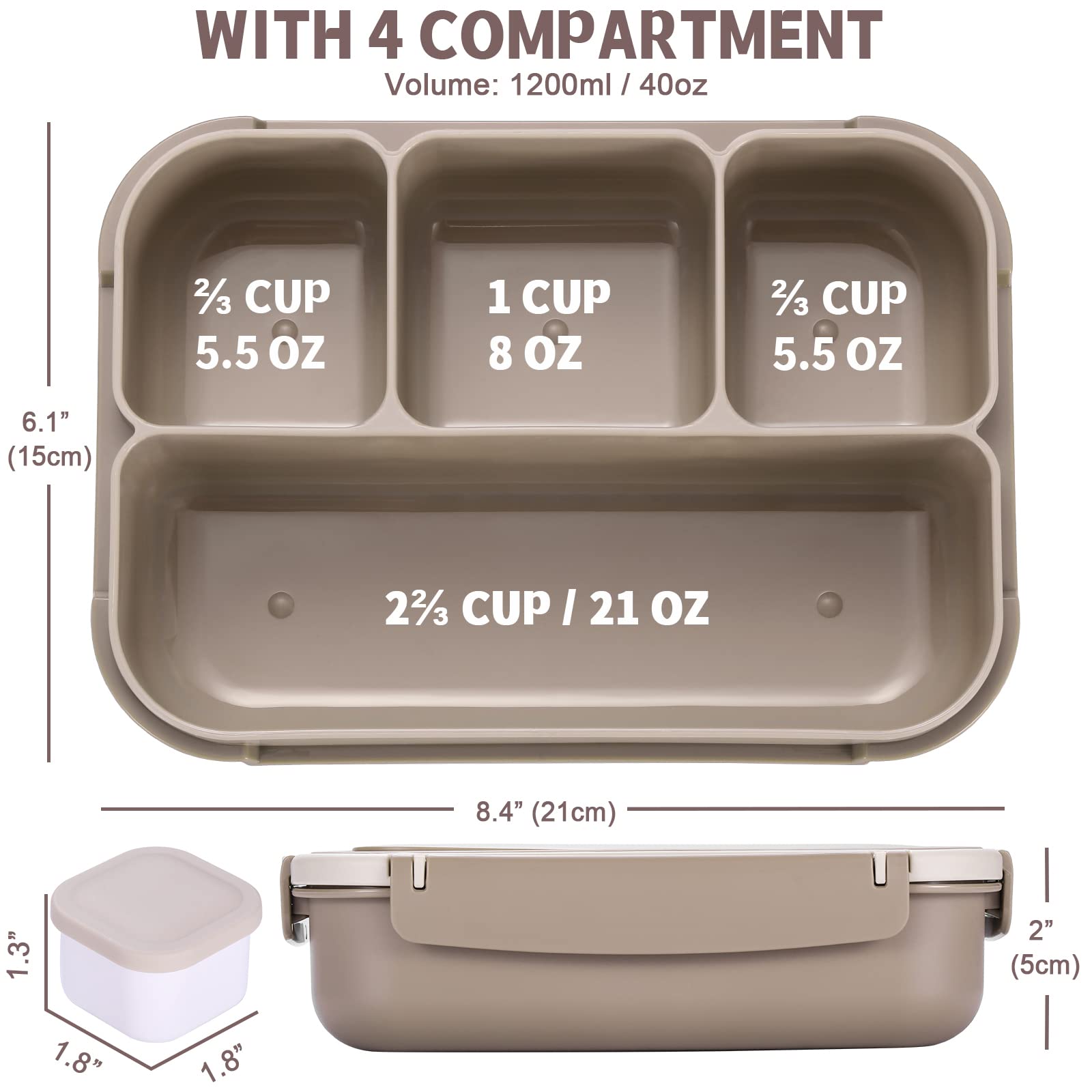 - With 4 Compartments: Bento box adult lunch box has 1200ml / 40oz capacity, with 4 compartments for different kinds of food. Separate compartments to maintain the original flavor of the food. Perfect capacity size is suitable for all ages