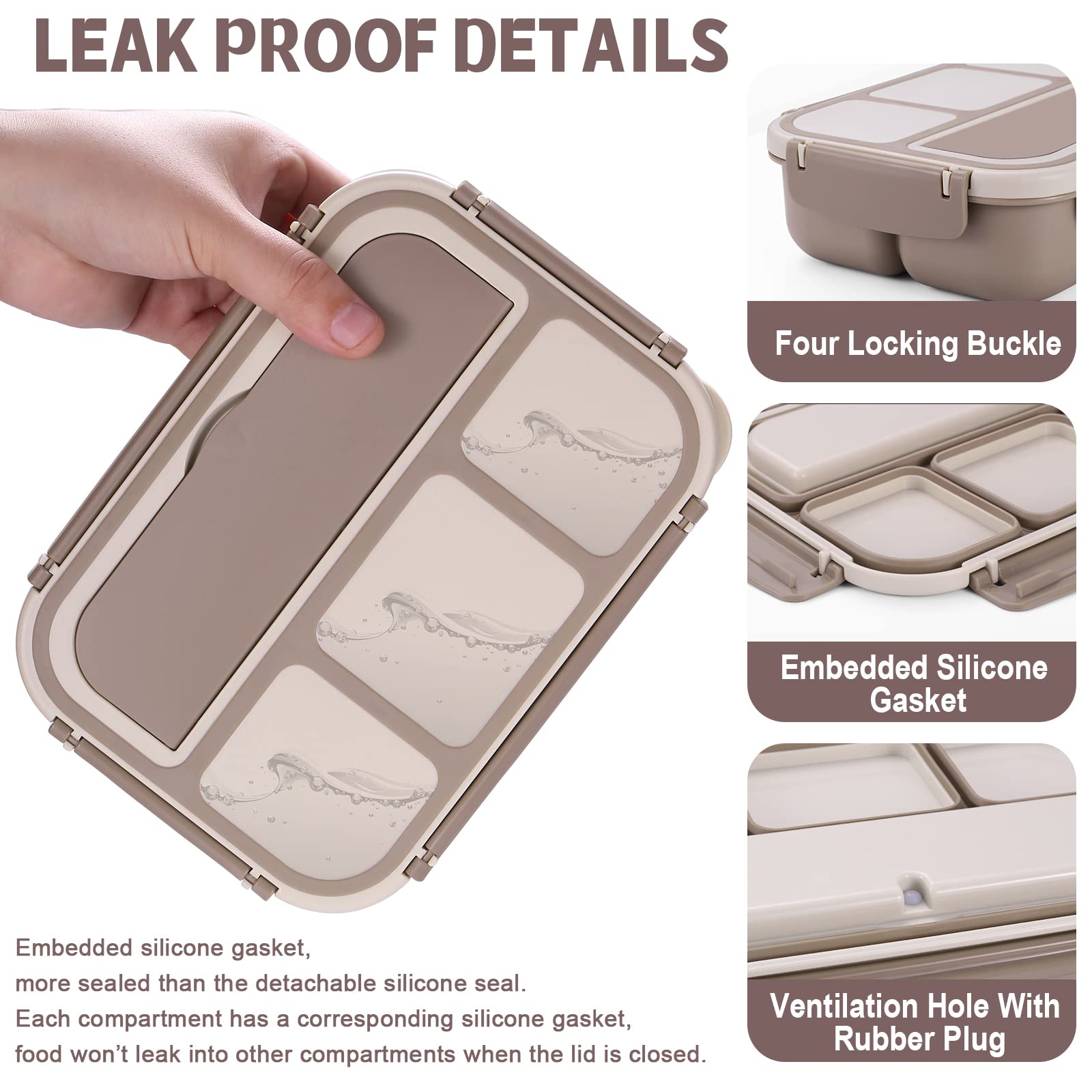 - Leak-proof Design: The lunch box's lid has embedded silicone gasket and 4 locking buckle. Each compartment has a corresponding silicone gasket. All-round seal, no worry about food leak out