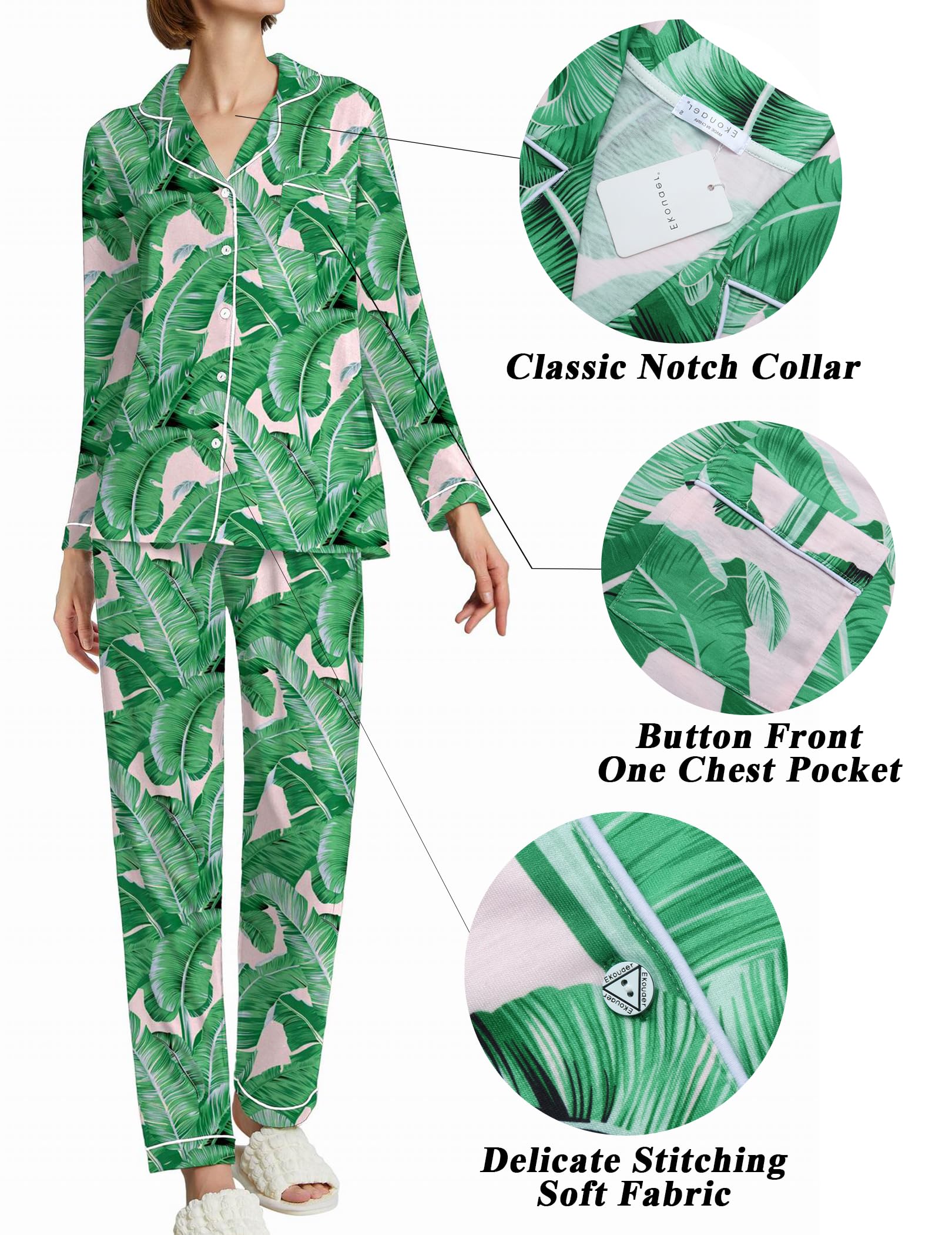 Details: Ekouaer Pajamas Set Long Sleeve Sleepwear Womens Button Down Nightwear Soft Pj Lounge Sets XS-XXL
