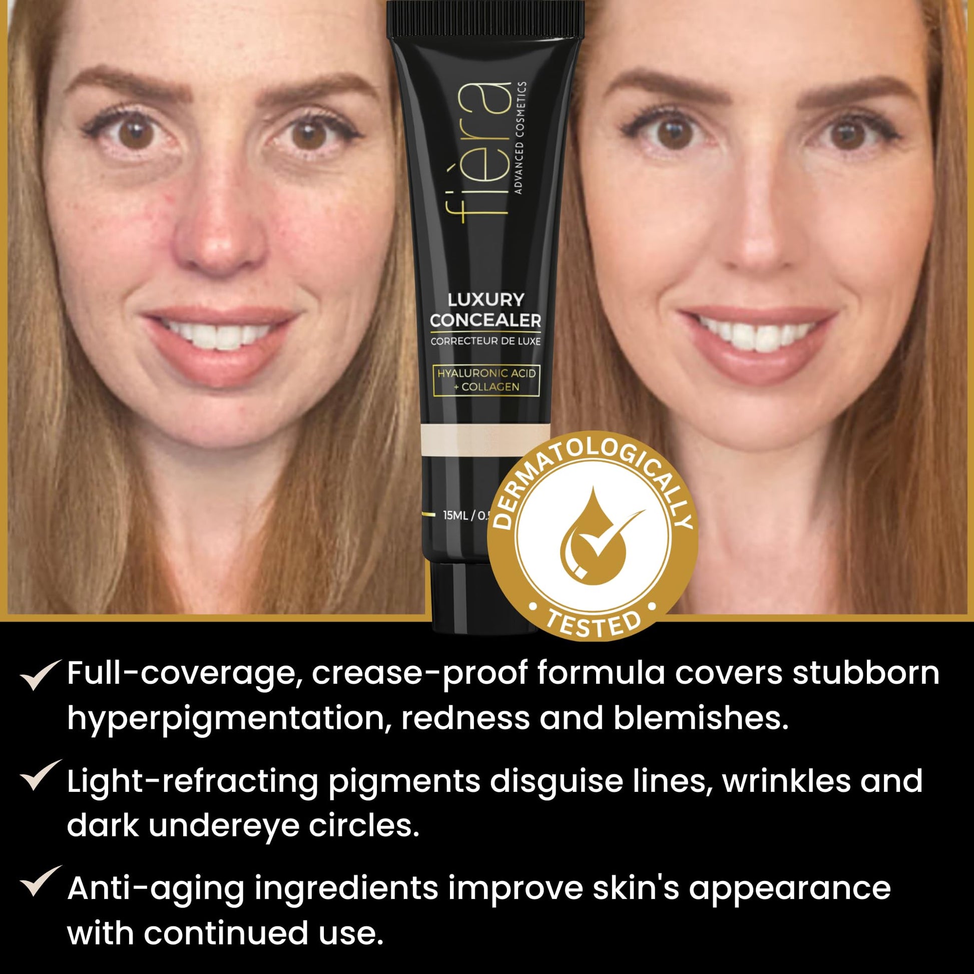 Details: Fièra Luxury Concealer is the only concealer of its kind for women over 40, providing all-day coverage that never gets cakey or settles into fine lines.Plus working "behind the scenes" are premium skin care ingredients helping to reduce signs of aging and giving you firmer, healthier, and brighter looking skin in the long term.
