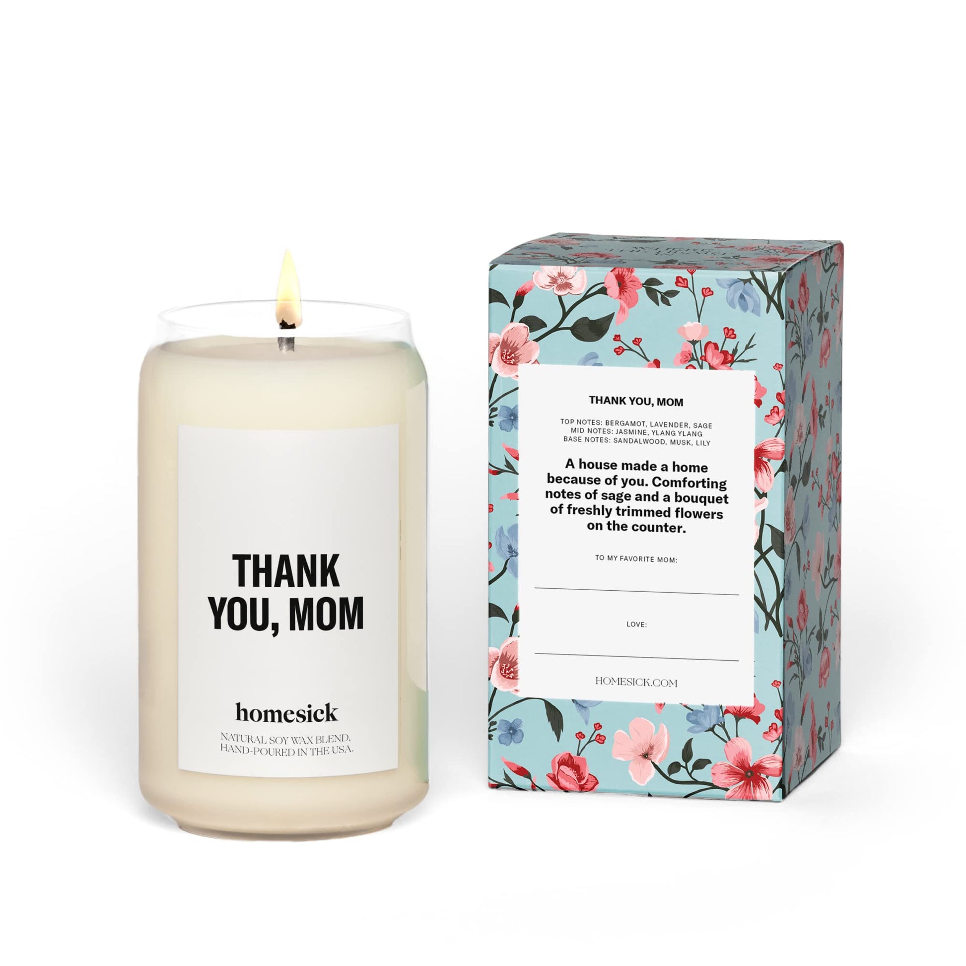 - THE PERFECT CANDLE: Whether it is to say thank you to your mom for being there, for all the support and love, or anything in between, our Thank You Mom candle is the ideal way to give your token of appreciation. This 13.75 oz candle is the perfect scented decoration for their home and office as it brings back memories through nostalgic scents.
