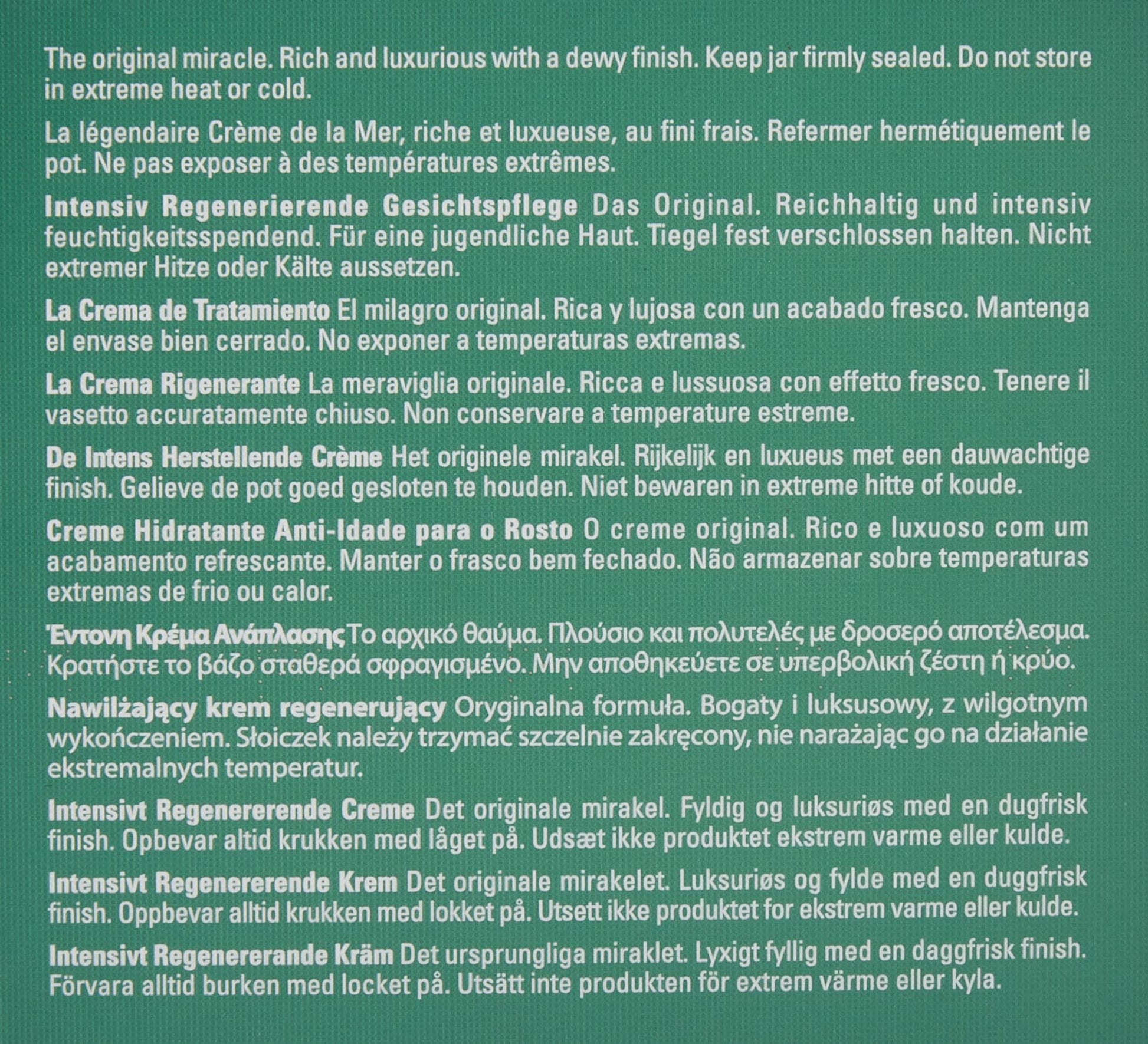 Details: This luxurious cream delivers the same radiance and renewal that made the original creme de la Mer a legend in a supple new texture. Infused with the nutrient-rich miracle broth, the heart of la Mer's profound powers of transformation, it penetrates deeply to replenish moisture and strengthen skin. Renewed and energized, skin looks youthfully radiant.