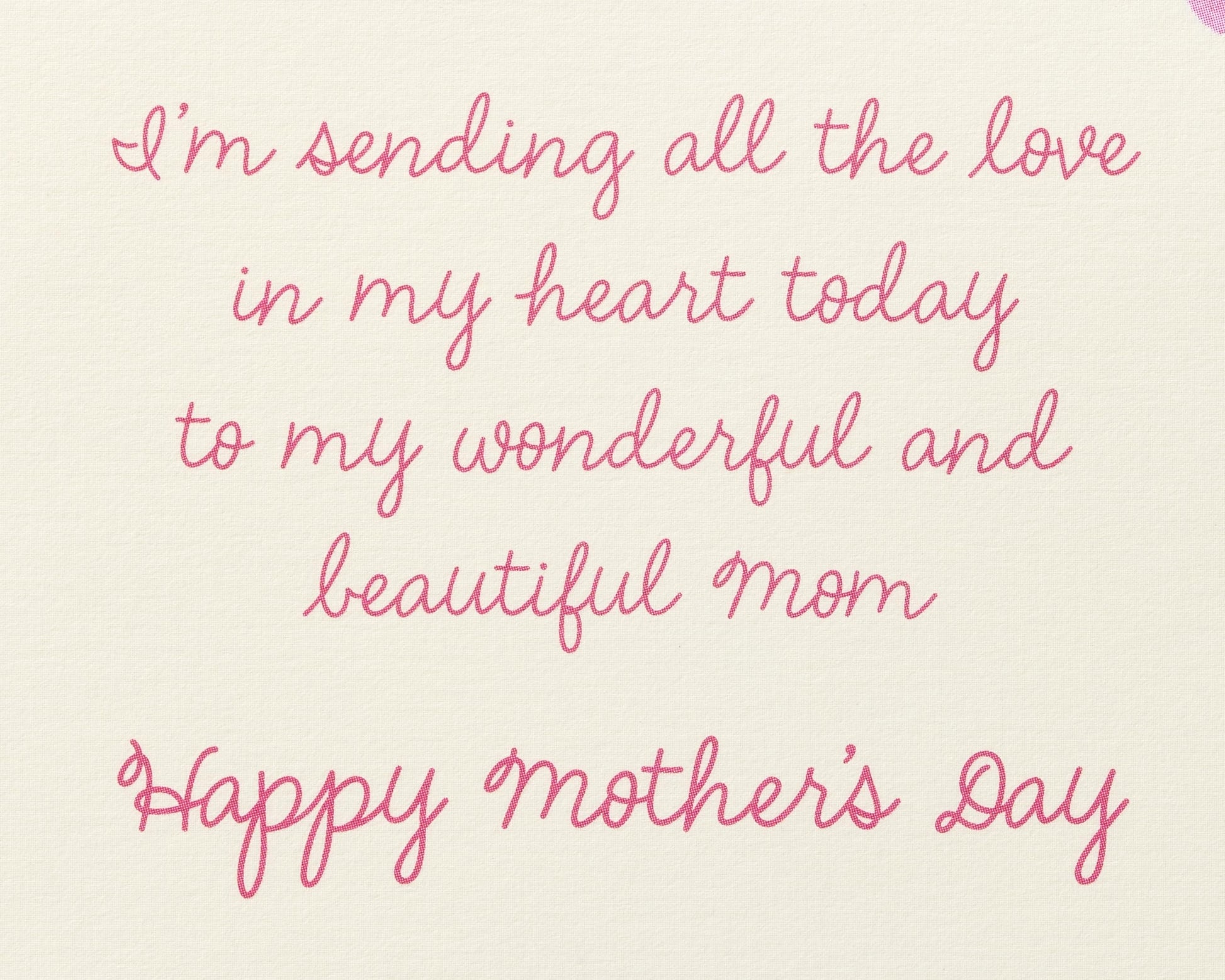 - Inside Message: I'm sending all the love in my heart today to my wonderful and beautiful Mom Happy Mother's Day